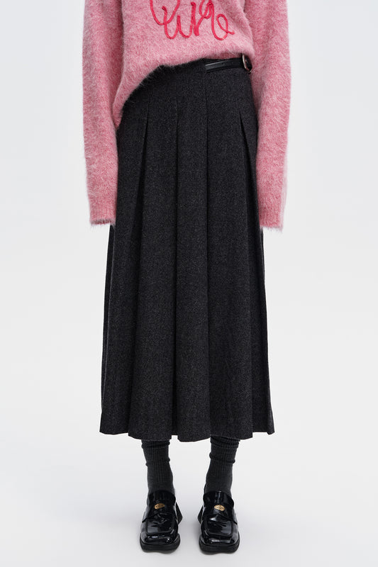 SELFWHO 100% Wool Long Scarf Collar Coat