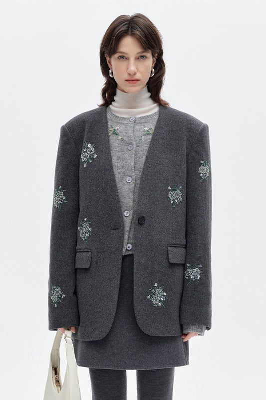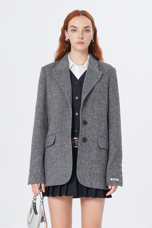 SELFWHO New High-Grade Gray Wool Suit Jacket For Women