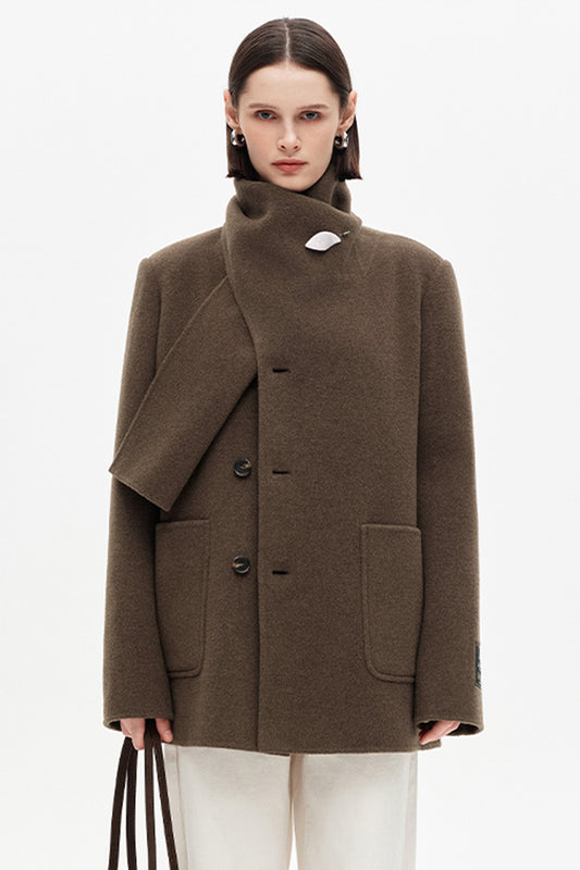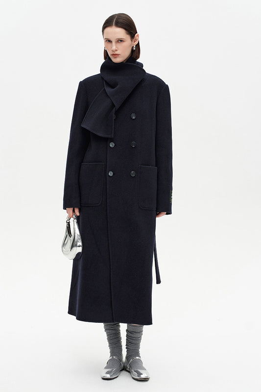 SELFWHO Wool Blend Scarf Collar Double-Faced Coat