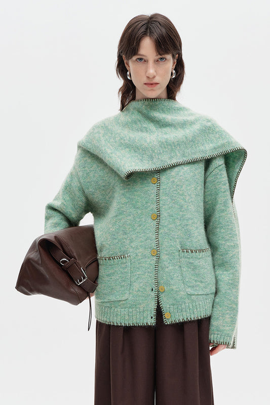 SELFWHO 100% Wool Blend Embroidered Lace Scarf Collar Sweater