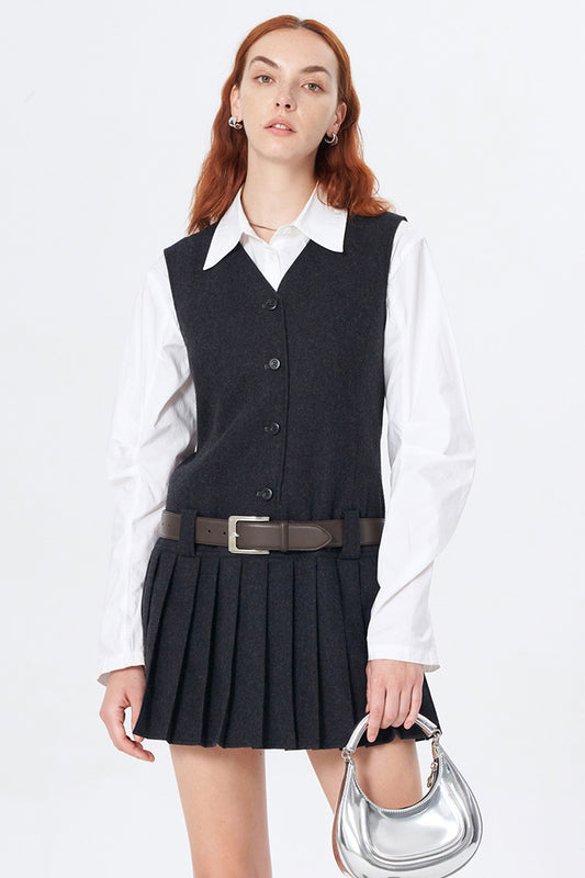SELFWHO Wool Gray High-End Vest Skirt