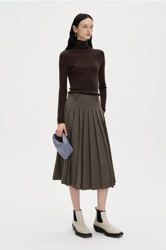 SELFWHO Wool Blend Gray Pleated Skirt