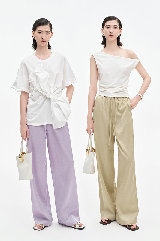 SELFWHO acetate tencel blended drawstring casual pants