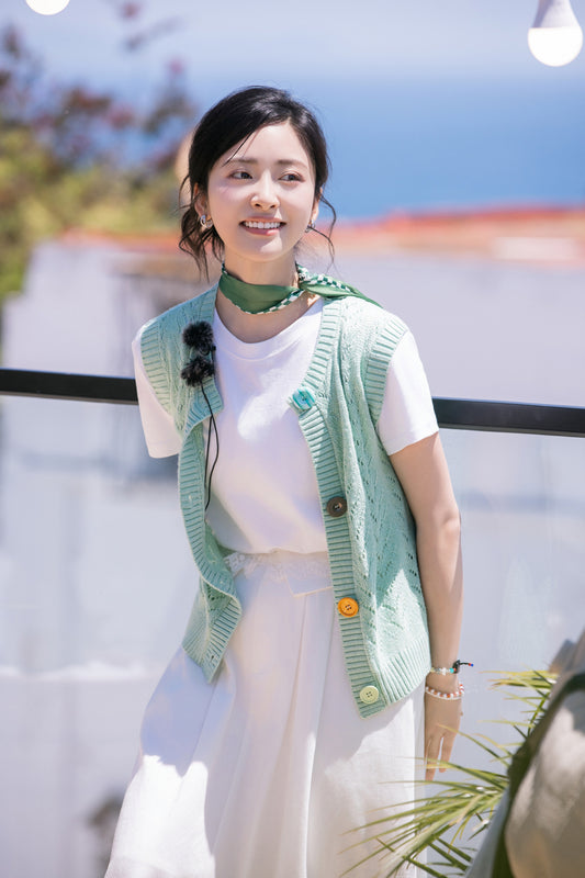 SELFWHO Linen Blend Hollow Knit Vest(Same style as Shen Yue)