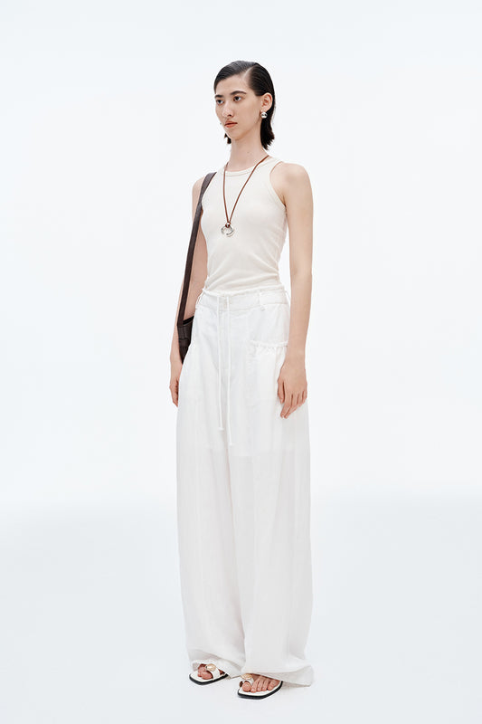 SELFWHO Lyocell Blend Drawstring Lace Casual Straight Pants