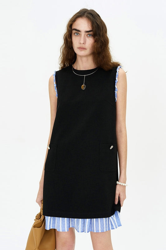 SELFWHO Contrast Color Stitching Fake Two-Piece Dress