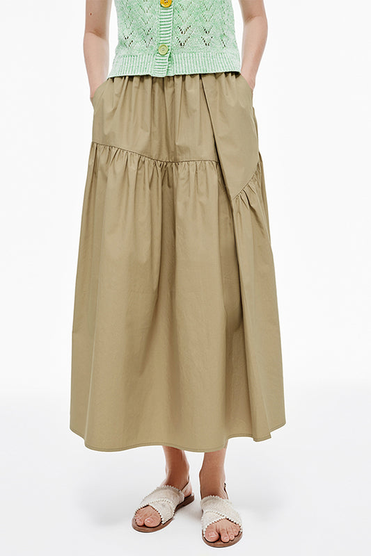 SELFWHO Casual Loose Cotton Khaki Skirt