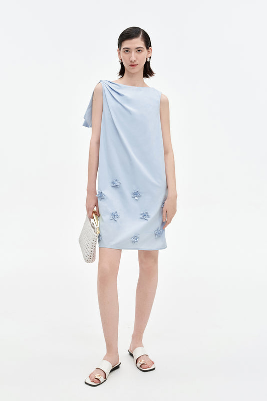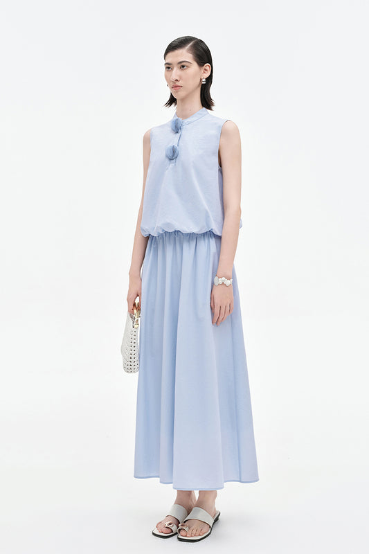 SELFWHO Lyocell Cotton Blended Pleated Vest Dress