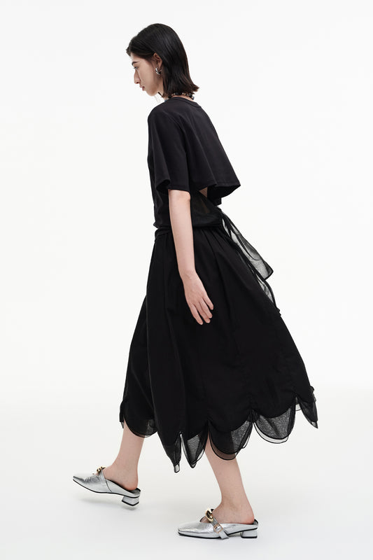 SELFWHO New cotton petal-shaped A-line skirt+Top