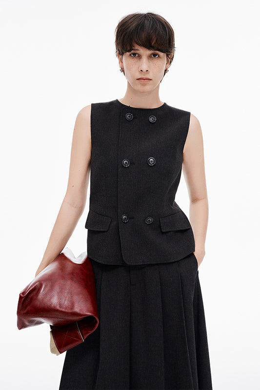 SELFWHO High Waist Casual Half-Length Pleated Skirt+Vest(The size is small, it is recommended to order a size up)