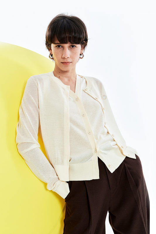 SELFWHO Tencel Wool Blended One-Shoulder Neck Puff Sleeve Suit Shirt