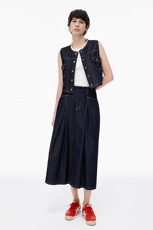 SELFWHO Cotton Lyocell Blended Vintage Denim Skirt + Vest(The skirt is small, it is recommended to order a size up)