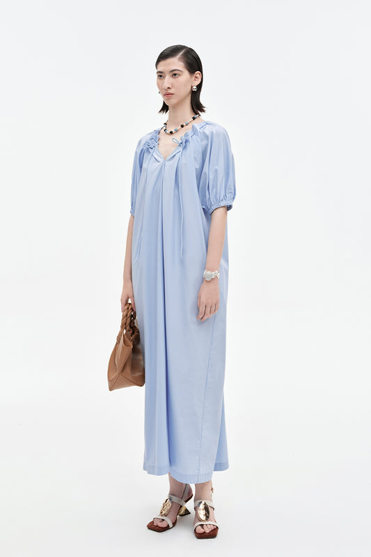 SELFWHO Lyocell Cotton Blend Puff Sleeve Dress