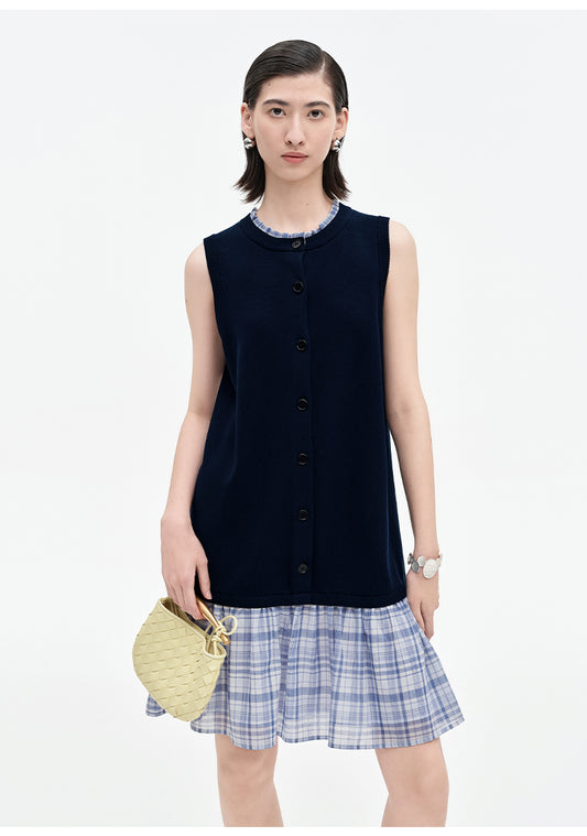 SELFWHO Blended V-Neck Sleeveless Knitted Vest Cardigan