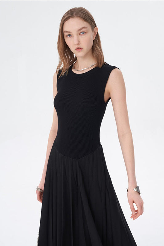 SELFWHO Contrast Color Stitching Fake Two-Piece Dress