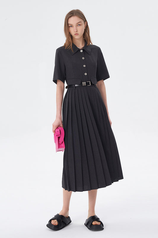 SELFWHO High Waist Casual Half-Length Pleated Skirt+Vest(The size is small, it is recommended to order a size up)