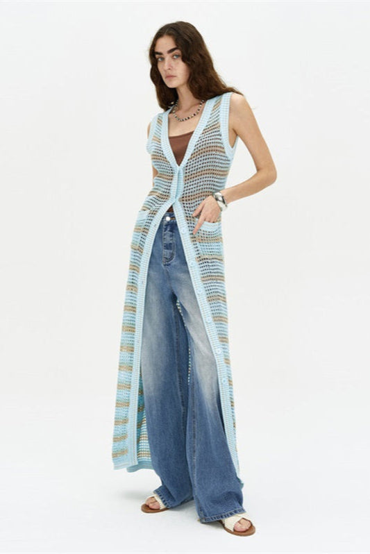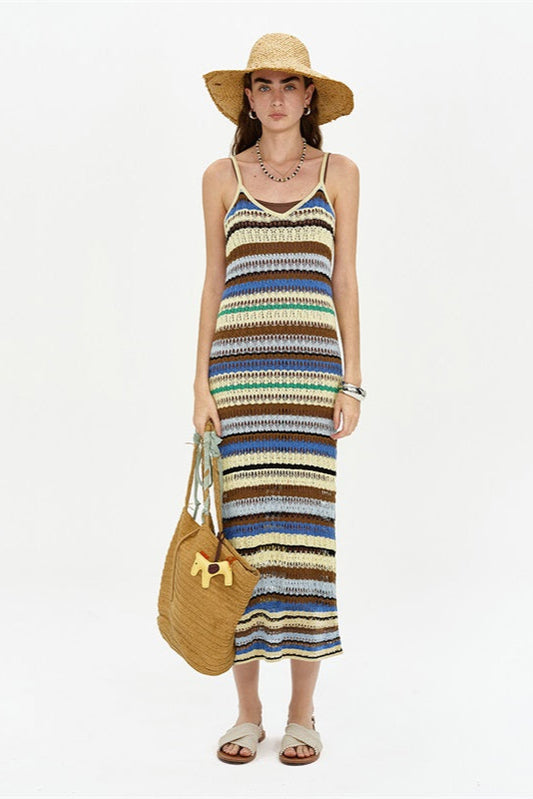 Knitted Cardigan V-neck Seaside Holiday Long Dress