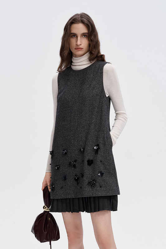 SELFWHO Wool Blend Sleeveless Grey Dress