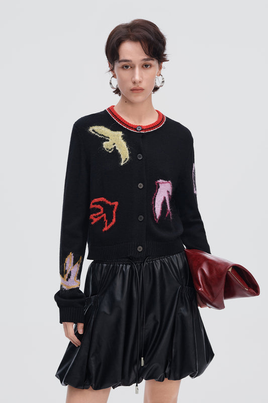Wool blend knitted cardigan round neck high-end swallow wool sweater