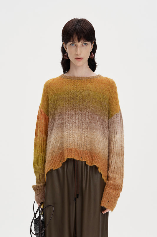 Alpaca blend hand-knitted sweater loose hollow striped sunset shirt