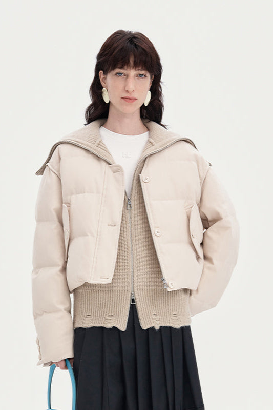 Wool Alpaca Blended Classic Scarf Collar Knit Sweater Women's Lightweight Short Sweater