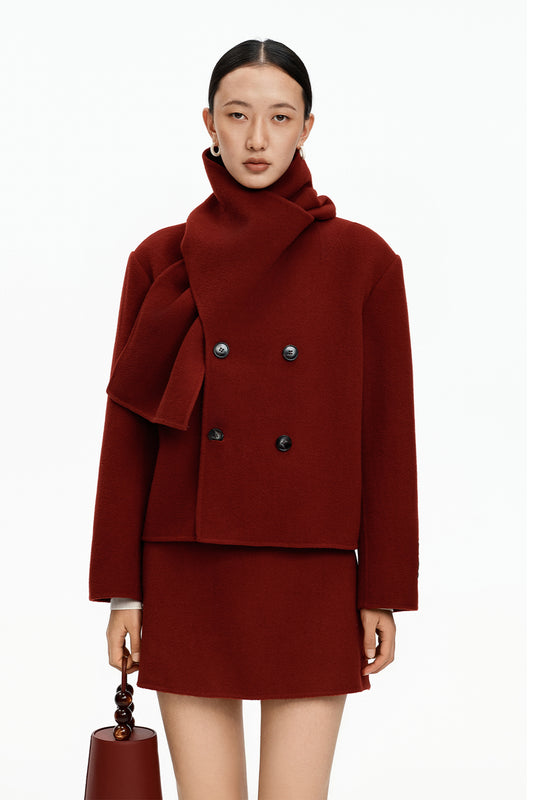 SELFWHO Wool Christmas Red Scarf Collar Coat