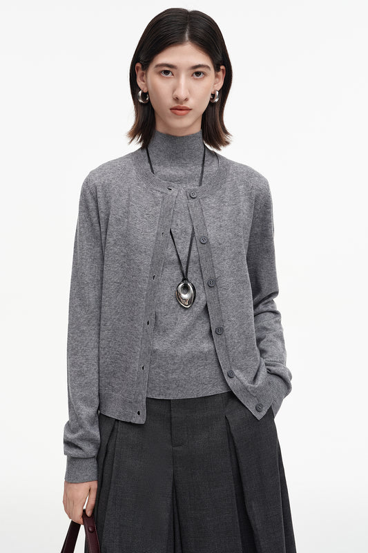 SELFWHO sheep wool blend classic round neck knitted bottoming shirt + cardigan set
