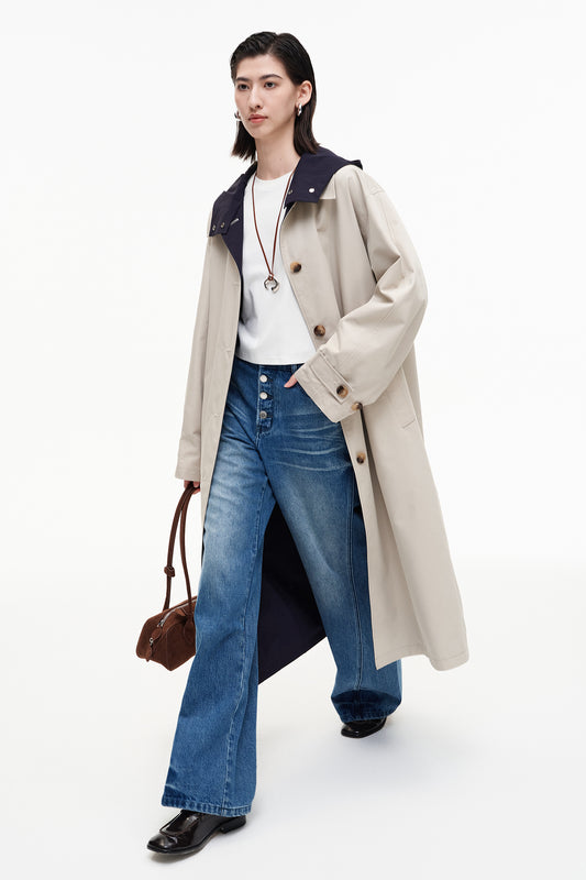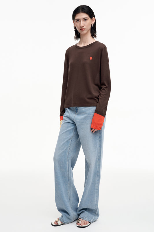 SELFWHO Tencel wool blended contrast color long-sleeved T-shirt