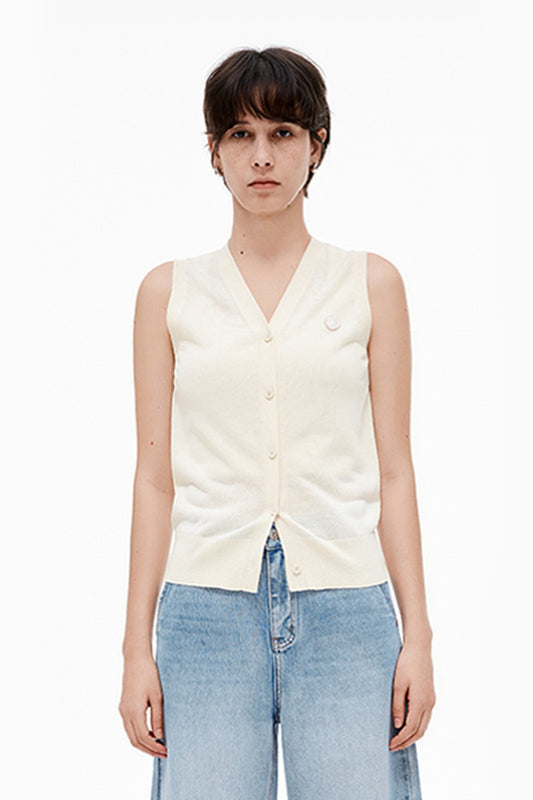 SELFWHO Blended V-Neck Sleeveless Knitted Vest Cardigan