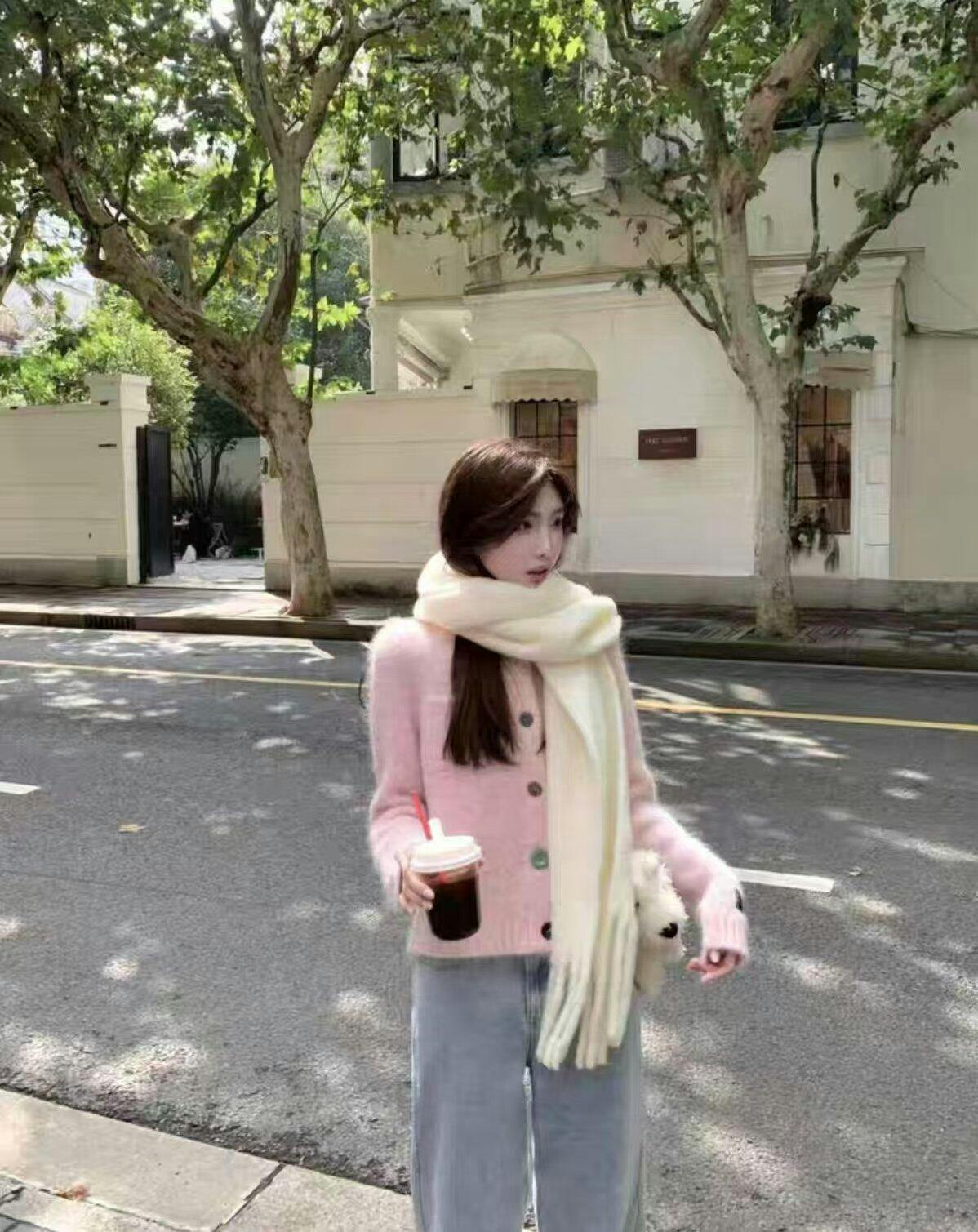 Design Description: This alpaca wool knit cardigan features a round neckline and straight shoulders. The buttons are accented with contrasting colors, adding a touch of playfulness. The buttons are made of high-quality resin. The loose fit allows for easy pairing with vests, knitwear, shirts, T-shirts, and more, creating a slimming and comfortable look.