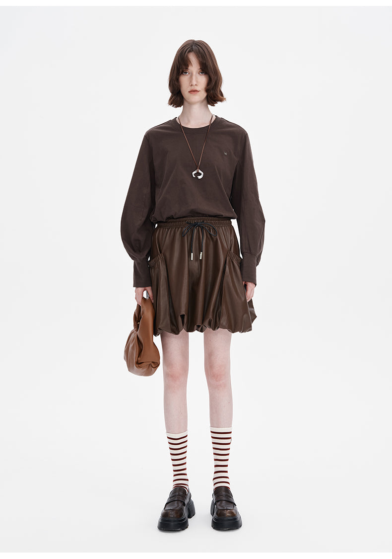 Lazy casual loose bottoming top pure cotton simple solid color long-sleeved T-shirt