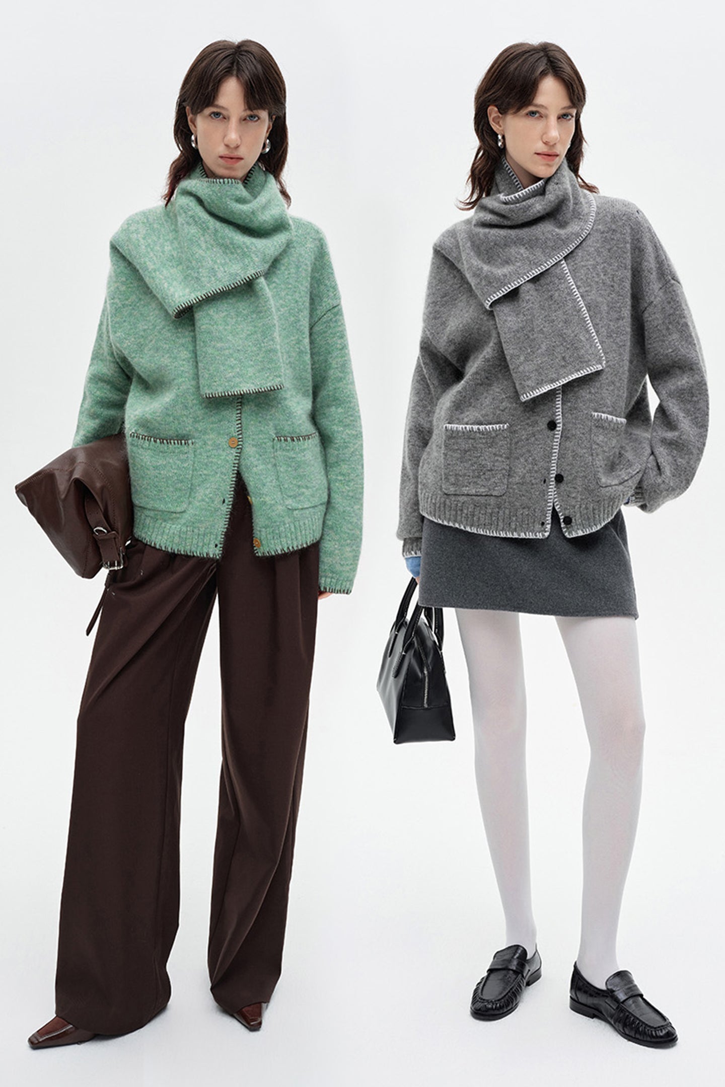 SELFWHO 100% Wool Blend Embroidered Lace Scarf Collar Sweater