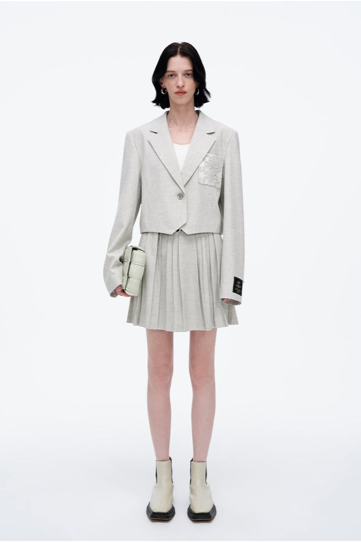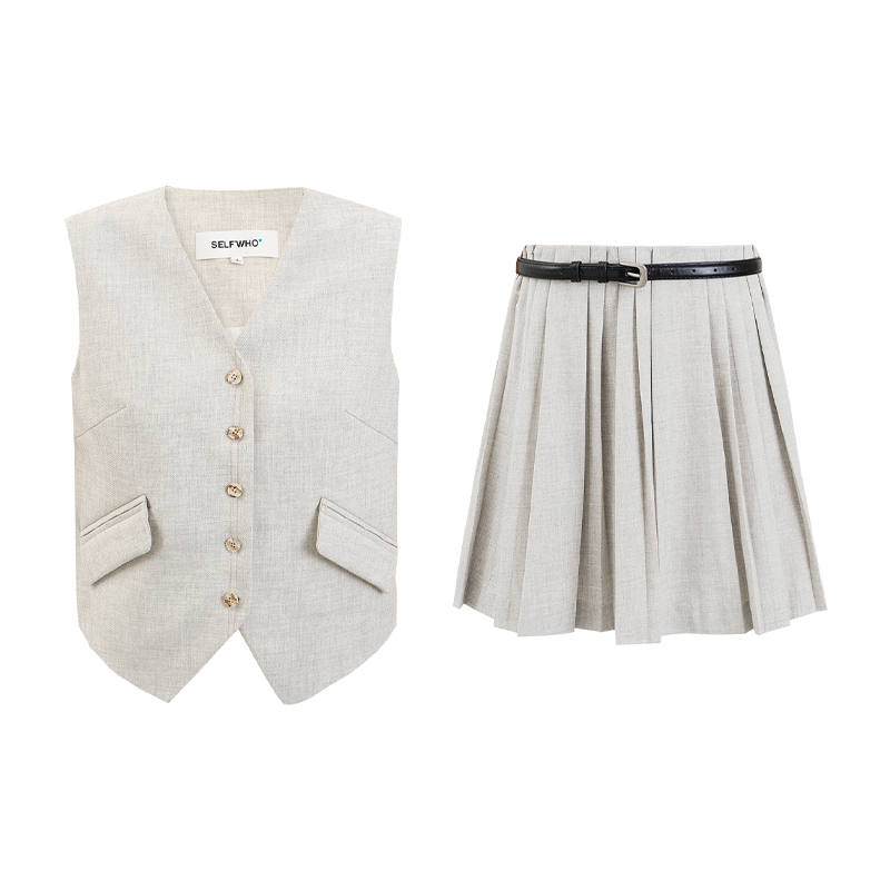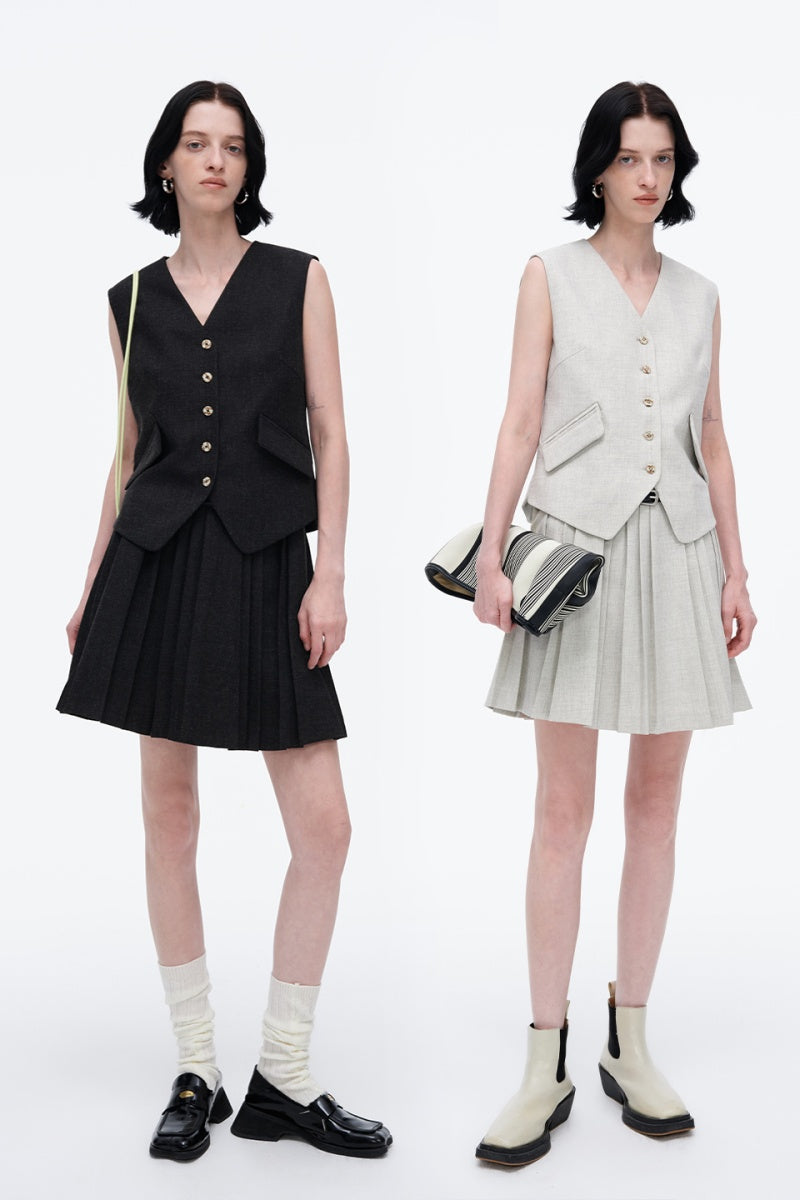 Design Description: Slightly loose vest with oblique suit pockets to break the serious atmosphere, contrasting placket button design.