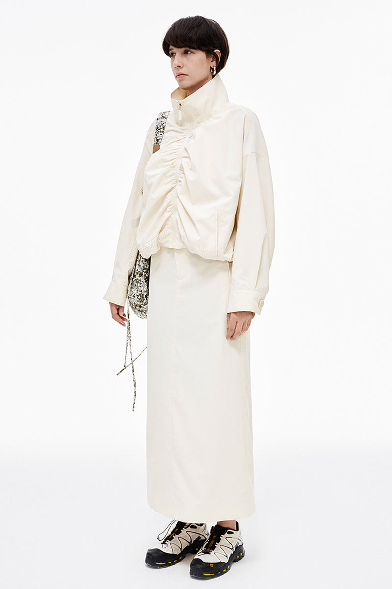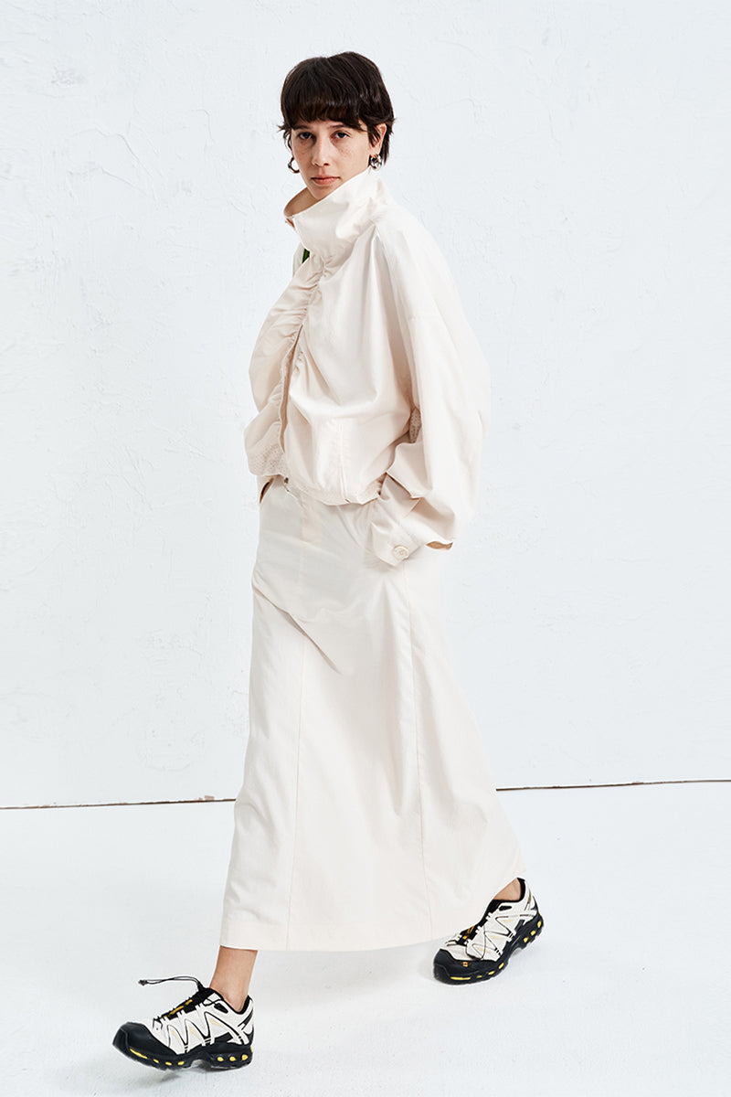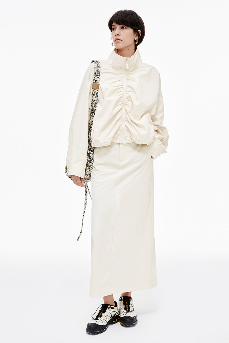 Straight skirt, the lining is made of mesh fabric, and the placket is equipped with snap buttons to increase the interactivity with the top.