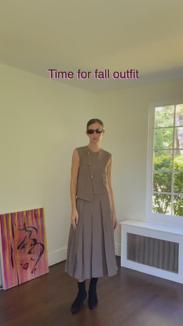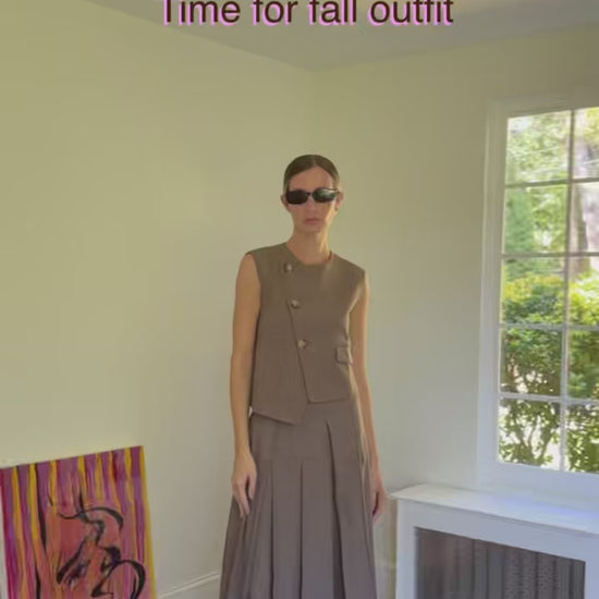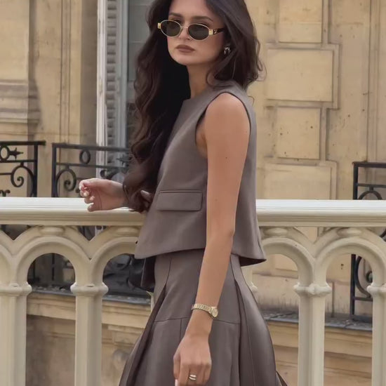 SELFWHO High Waist Casual Half-Length Pleated Skirt+Vest(The size is small, it is recommended to order a size up)