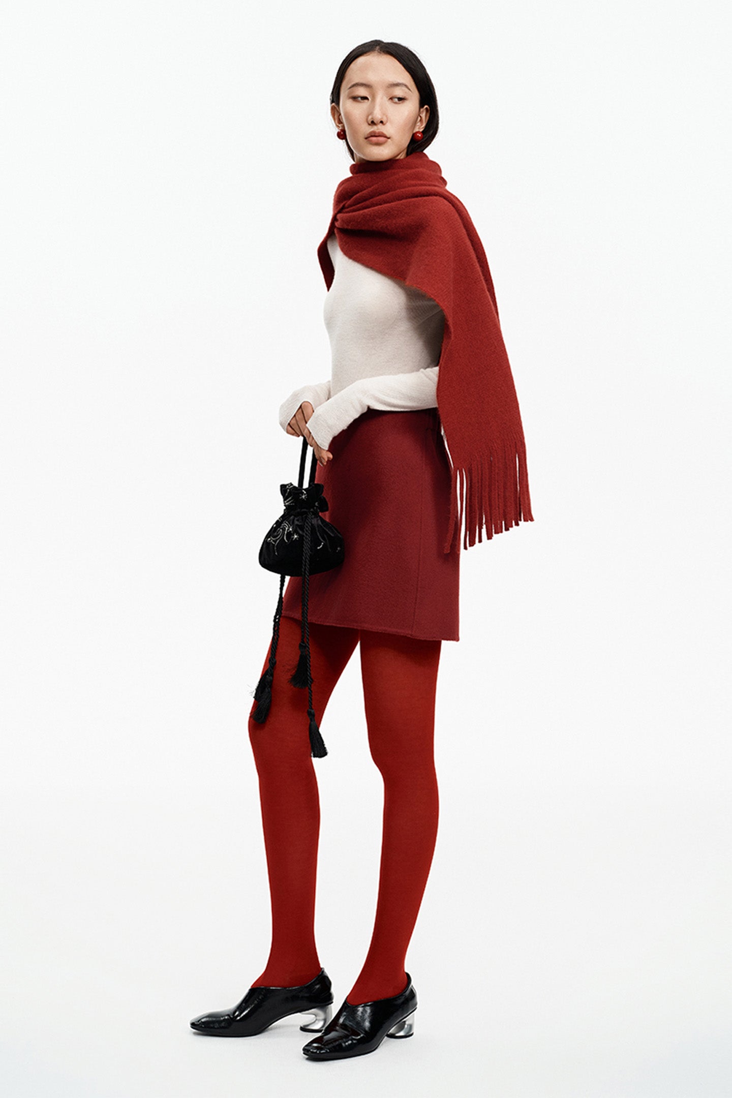 SELFWHO Merino Wool Blend Oriental Red Tassel Scarf