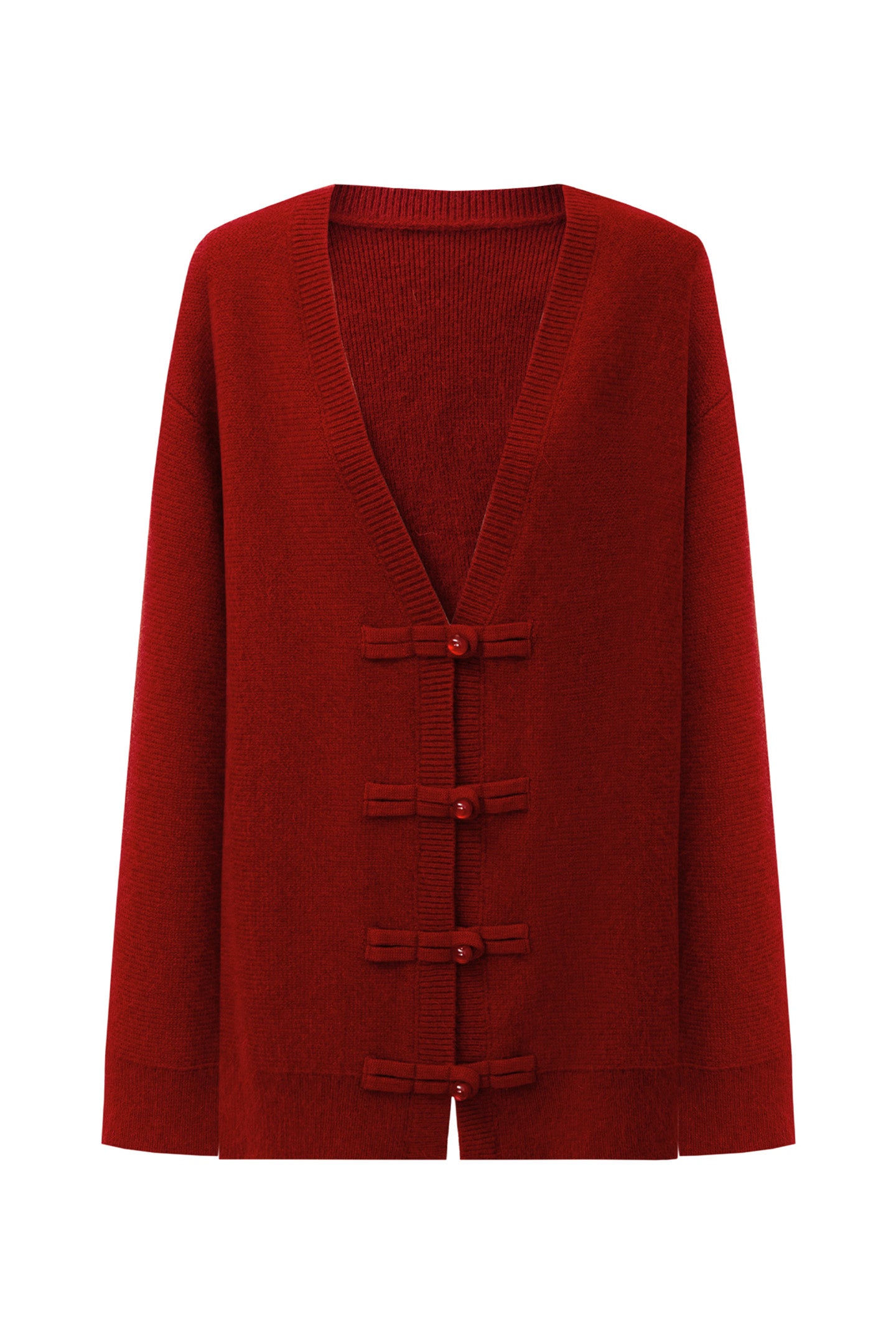 SELFWHO Merino Wool Blend Oriental Style V-neck Knitted Sweater