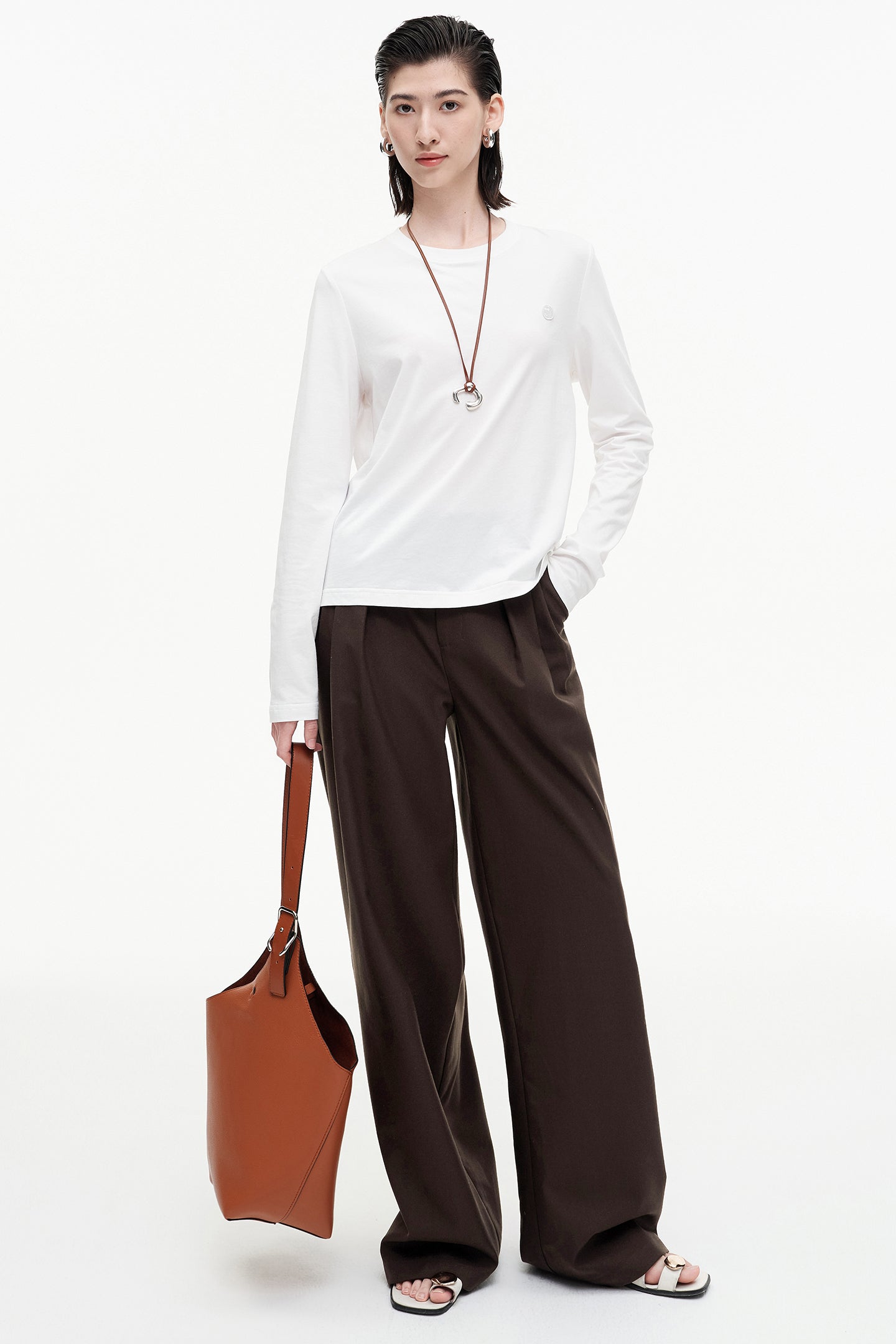 1. Loose-fitting, round-neck, long-sleeved T-shirt