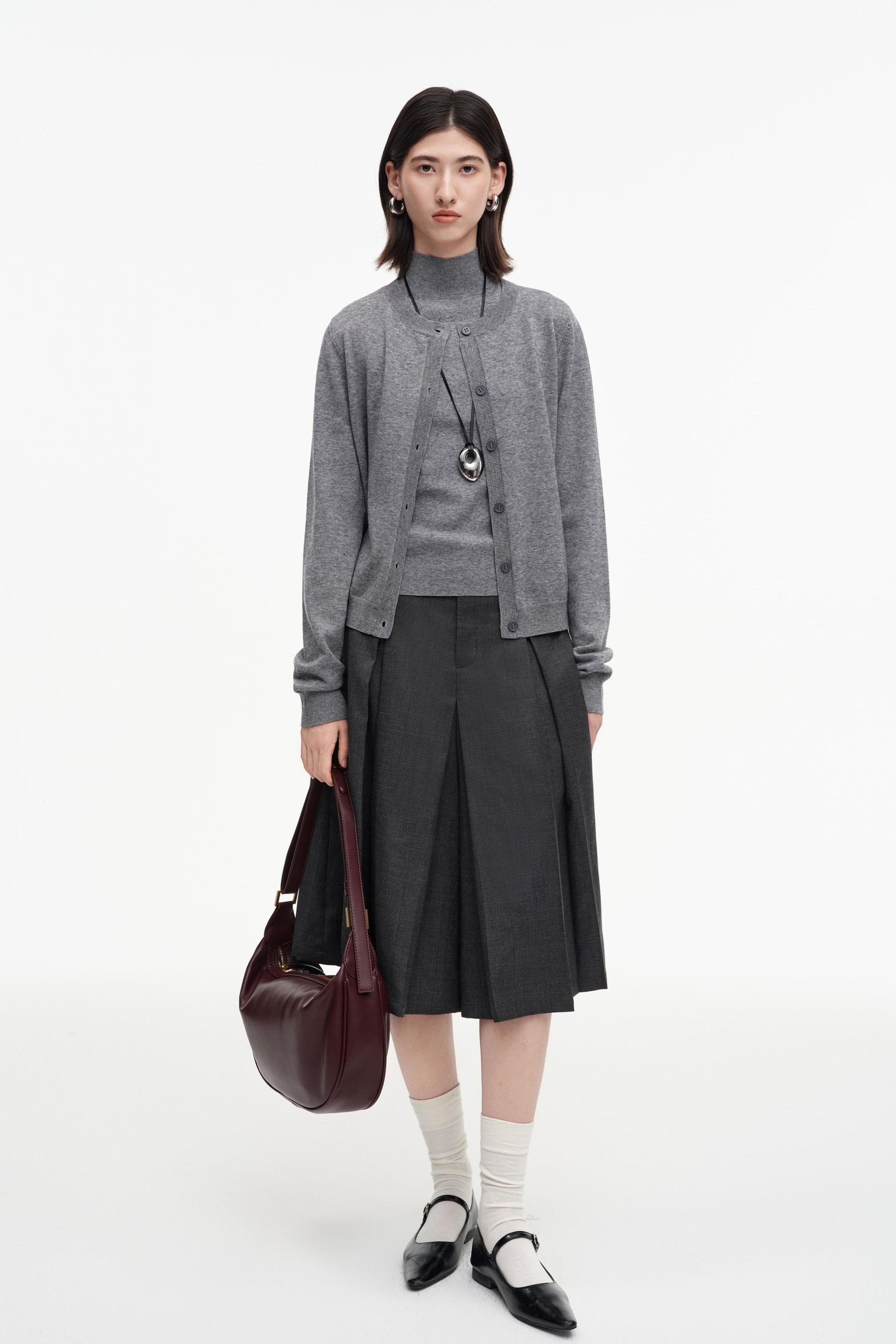 SELFWHO sheep wool blend classic round neck knitted bottoming shirt + cardigan set