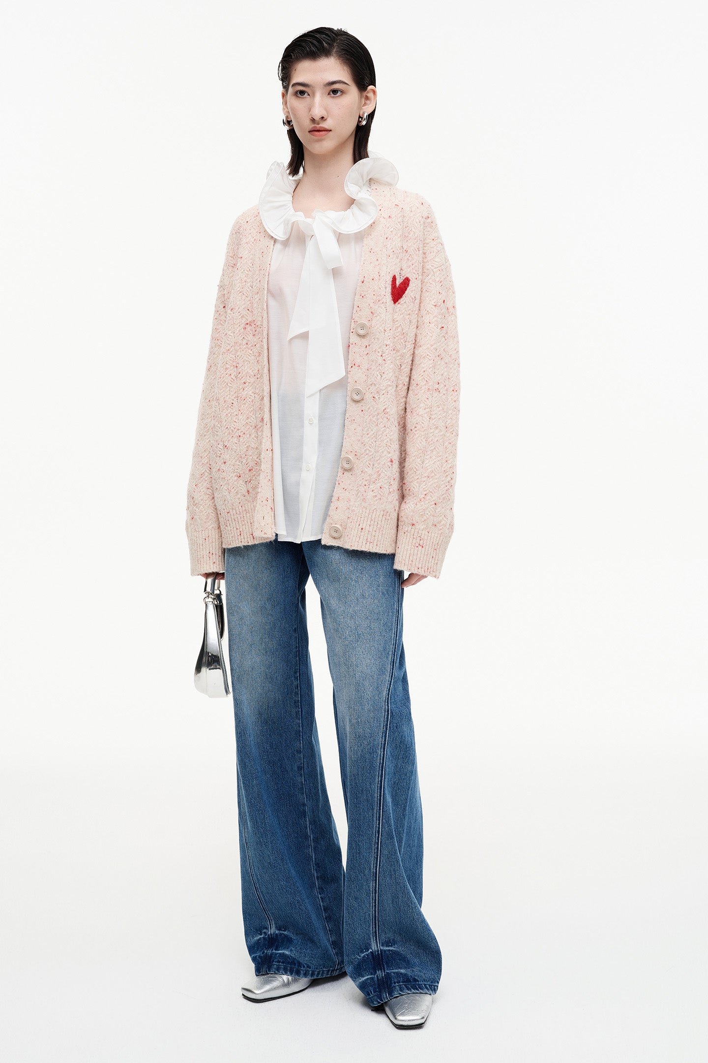 SELFWHO Wool Blend Heart V-Neck Knitted Cardigan